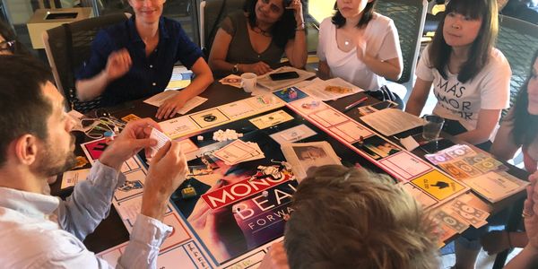 Multi-player (30 people) monopoly game event where players bid on future states and tech, and align on 2030 business strategies.